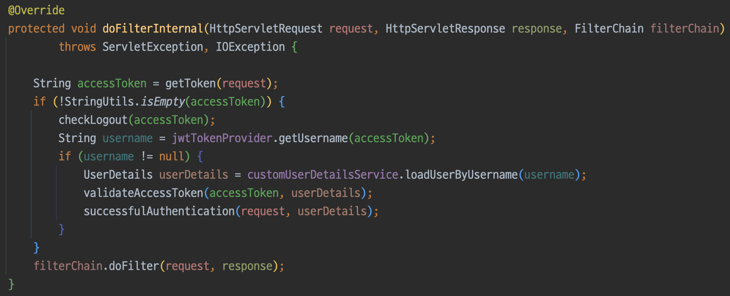 2. Filter를 통해 API 요청 마다 JWT토큰 검증